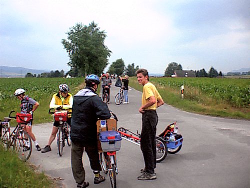 Bilder und Tourenbericht vom 7. 7. 2002: mit dem ADFC-Hameln auf Umwegen zur Pappmühle und die anschließende Liegerad-Rückfahrt von Hameln über Völkerhausen nach Börry |
