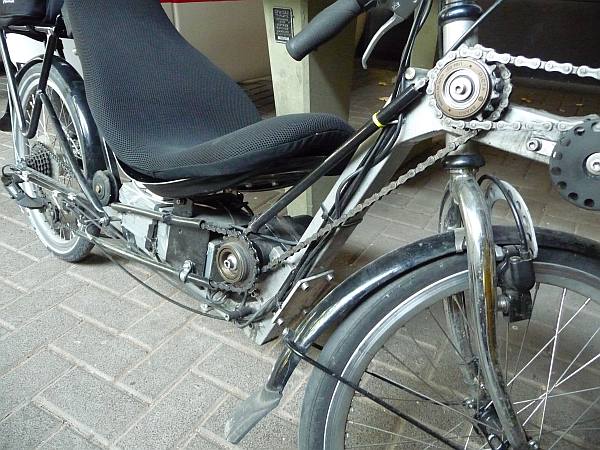 Durch 2 Zwischengetriebe mit Freilauf, ist keine Freilaufkurbel nötig.