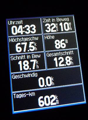 Mein GPS zeigt 4:33 Uhr Ankunft in Börry, 602km in 4 Tagen.