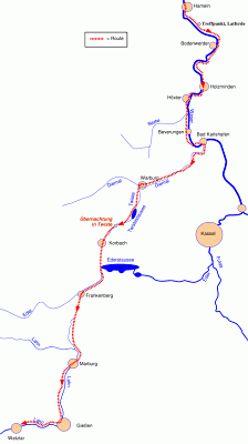1. Anreisetag, Do, 25. 9. 08, Hameln > Warburg > Twiste (150 km, Tachoschnitt: 19 km/h):