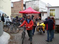 Kurz vor 10 Uhr, Treffpunkt Bockerode bei Mittelrode (östlich von Springe): Klaus-Dieter (siehe oben) empfängt Martin zum Frühstück, welcher aus dem Landkreis Holzminden per Langlieger angereist war.
