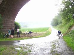 Martin schrieb im Forum: Ich habe Jürgen bis Gieselwerder begleitet, dort meinen zerfallenen 20"-Mantel (am Peer Gynt) mit Kabelbindern bandagiert, und bin fast wie geplant wieder gen Heimat geradelt.