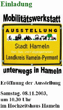 Im Rahmen einer Ausstellung im Hochzeitshaus (Hameln) haben wir über das Thema Liegerad informiert. In diesem Zusammenhang fand dort am Sa, 15. 11. 2003 ein Liegeradtreffen statt. |