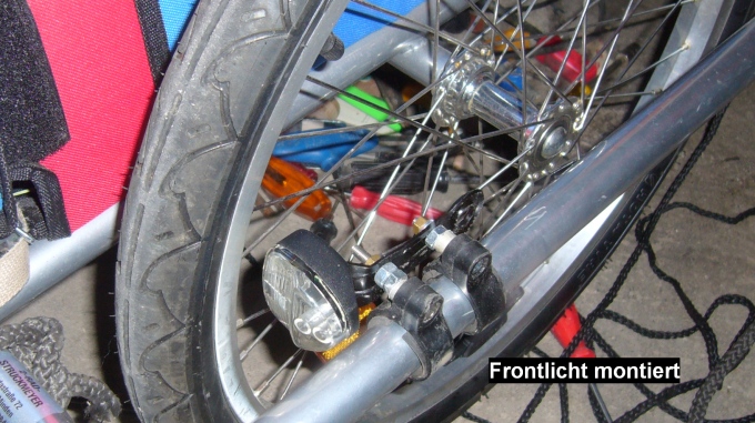 nicht zu sehen ist, habe ich das Frontlicht rechts hinten