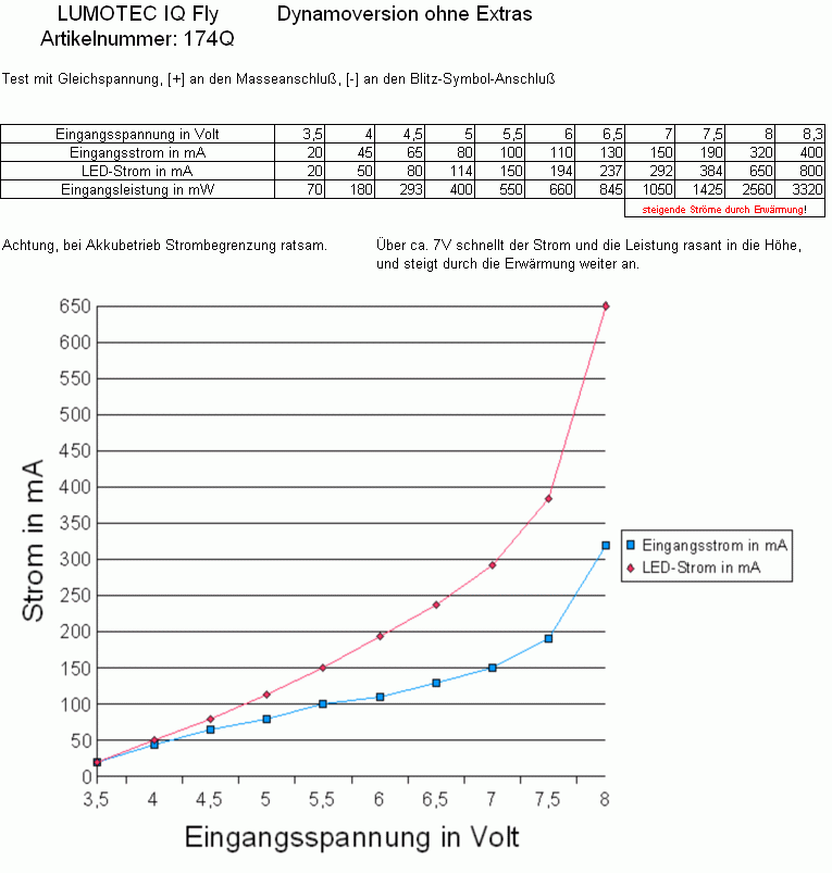 am Lampeneingang zeigt, daß der LED-Strom bis zu