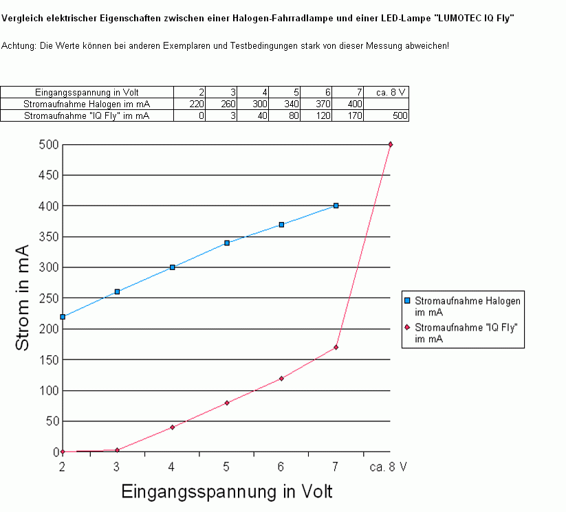 im flachen Kennlinien-Bereich bei ca. 6V. Die Lampe erreicht