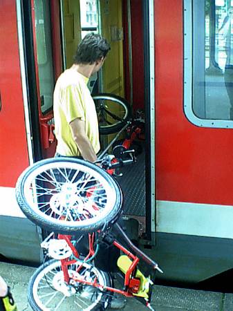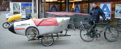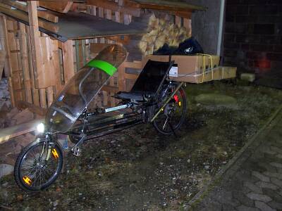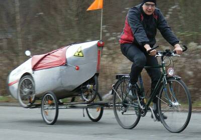 Liegerad-Lastentransport mittels Fahrrad und Anhänger |