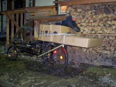 Andreas hat für Transporte ein Lastenquad gebaut. |