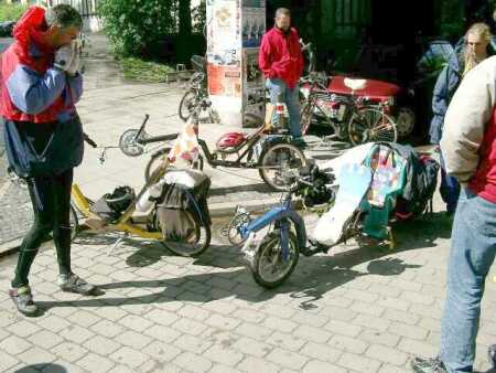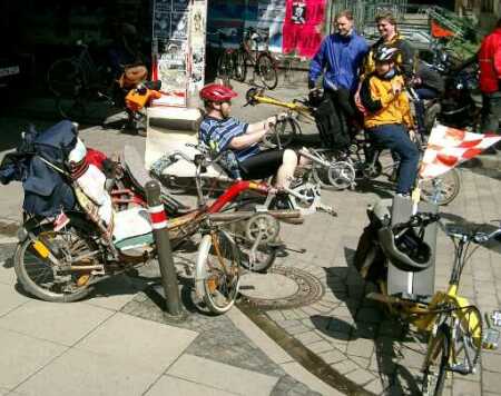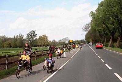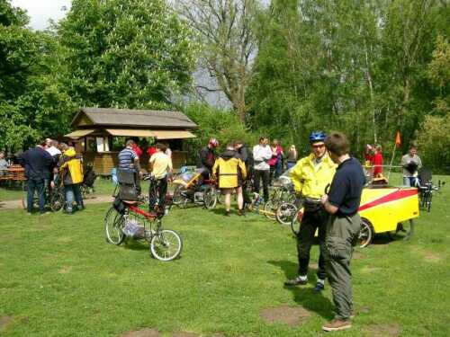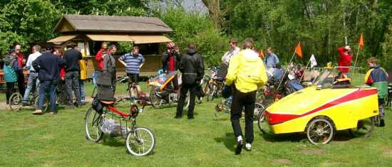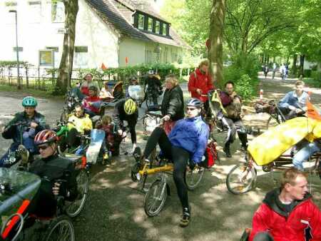 Bilder von der 1. Mai Tourder Liegeradgruppe HannoverTeilweise auf eigener Achse- (Anreise aus Hameln und Meiborssen) teilweise mit dem PKW kommend trafen sich alle WeLi in Devese. Von hier aus ging es durch Hannover und strömenden Regen zum UNI-Gelände. Hier haben wir uns an der 1. Mai-Ausfahrt der Liegeradgruppe Hannover beteiligt. |