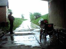 Andreas K. (links) und Martin D. (rechts) hatten hier noch etwas mehr Glück. Sie trafen sich bereits um 7:30 Uhr in Hameln und fuhren so diesem Schauer davon. Der starke Rückenwind blies sie zunächst Richtung Springe. Am Deister baute sich innerhalb weniger Minuten eine dichte Schauerfront auf. Ohne Unterstand gelang ihnen aber noch rechtzeitig eine Vollbremsung vor dem nassen Element (nur wenige Tropfen abbekommen :-). Keine 5 Minuten gewartet und der Spuk war auch schon wieder vorbei. also weiter in die Sonne !..... |