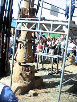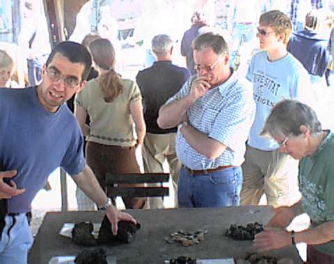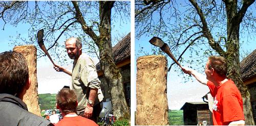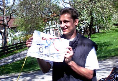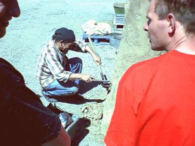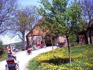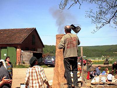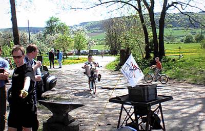 Weserradtour von 4. Mai 2003 zur Domäne Heidbrink bei Polle.Dort wurde nach historischem Vorbild eine Eisenverhüttung mit einem Rennofen durchgeführt (früher so in dieser Region betrieben). Das ganze fand in der Schmiede von Georg Petau in Verbindung mit der UNI-Göttingen statt. |