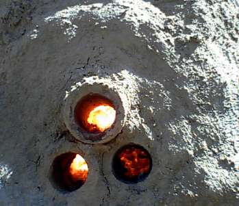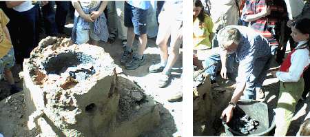 ![]() traditionelle Roh-Eisengewinnung Der Ofen wird befüllt! |
