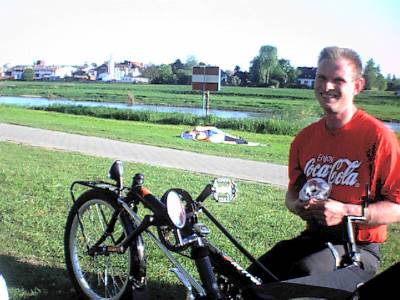 ![]() Nachdem Martin die Lage in Heidbrink kurz sondiert hatte, fuhr er den Weserreisenden entgegen. Hier in Dölme stießen sie aufeinander .... (Arno folgte uns später) |