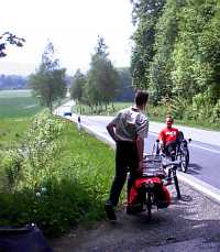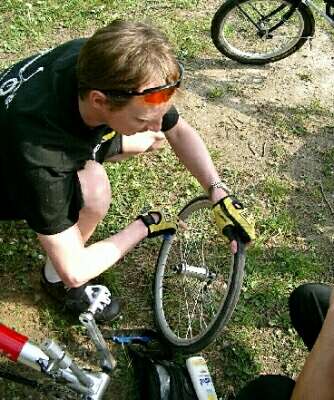 Wartungsarbeiten Teil 3: Sensation! Mikel ist die Luft ausgegangen ! Na ja, in diesem Fall wohl nur seinem Vorderrad. |