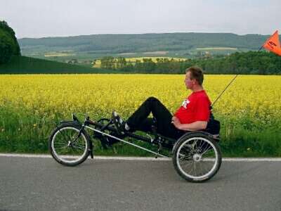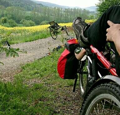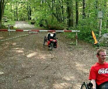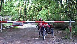 Einfache Schranken können einen Liegeradfahrer nicht wirklich an der (Unter-)Drurchfahrt hindern. |