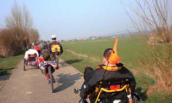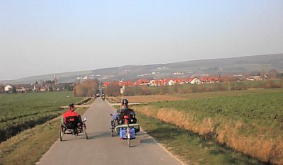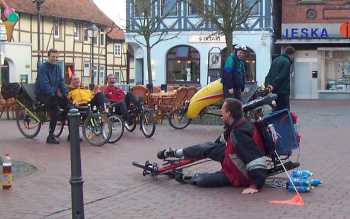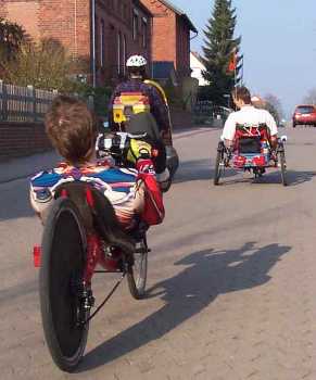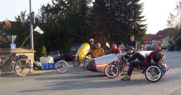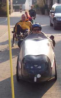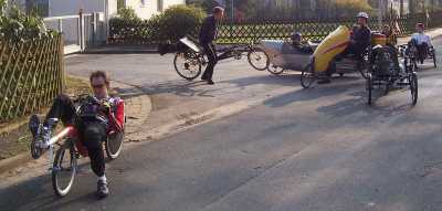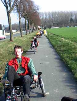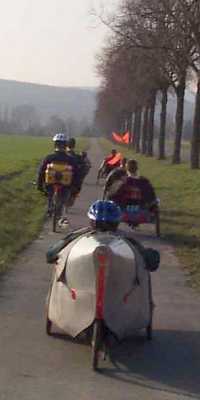 Am Ende der Liegerad-Schlange lauert Martin wieder einem motorisierten Windschatten auf ;-)