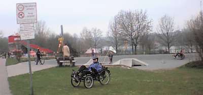 ![]() Doch zunächst wurde der Spielplatz überfallartig als Steilwand-Rundkurs mißbraucht. Das Schild bitten wir gnädig zu übersehen ;-) |
