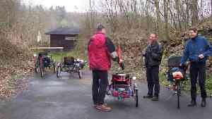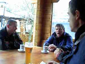 ![]() Teffpunkt in Emmerthal-Hagenohsen: Hier ist auch Stefan (links im Bild) erschiene. Er begleitete uns anfangs ein kurzes Stück - quasi um uns eine gute Reise zu wünschen ;-) |
