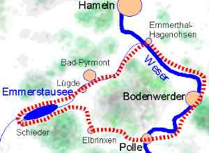 ![]() Wir im letzten Jahr wählen wir wieder die ruhigen Nebenwege endlang der Emmer. Martin ist hier noch nicht dabei. Er fährt direkt nach Lügde. |