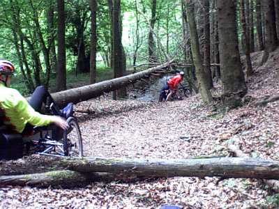 ![]() Nachdem Stefan wieder fahrbereit war, fuhren wir auch in Richtung Naturfreundehaus. Dann erinnerte sich Carsten an eine Abkürzung :-) |