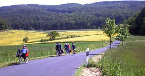 ![]() Am Morgen fuhren Stefan und Martin zum Naturfreundehaus. Stefan nahm an der Familientour teil (leider keine Bilder und Martin fuhr mit der anderen Gruppe über die vielen hügel des Extertales nach Bad Pyrmont. Eine pdf-Datei mit der ursprünglichen Tourenplanung findet Ihr HIER (unbedeutende Abweichungen von der Tatsächlichen Route). |