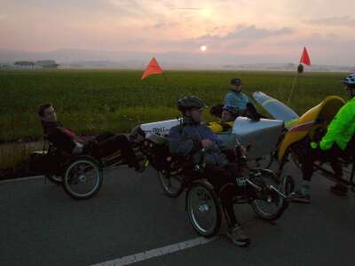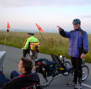 ![]() Kurz nach der Weiterfahrt werden die Nightrider von der aufgehenden Sonne begleitet. |