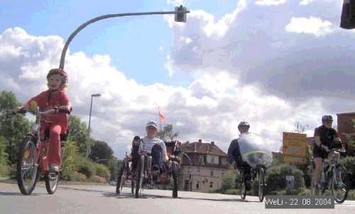 Mehr Bilder von diesem Liegeradtreffen findet Ihr in der Bildergalerie !! Nach einer ausgiebigen Pause beim Liegeradtreffen ( welches bis ca. 18 Uhr weiter lief ), fuhren beispielsweise diese Liegeradler weiter Richtung Hess. Oldendorf: |