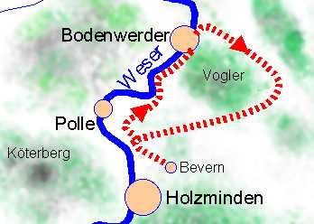 und fuhren auf Nebenstraßen (Golmbach, Warbsen, Forst) in das Wesertal.![]()