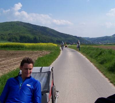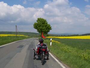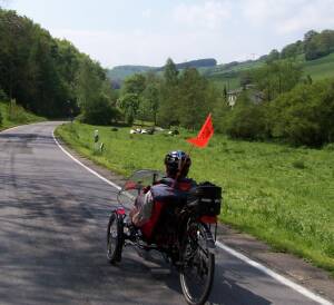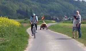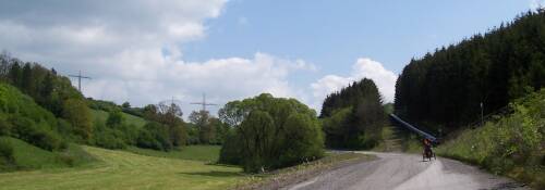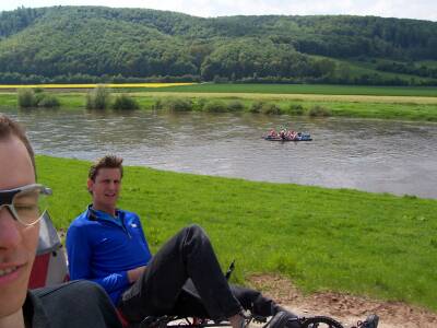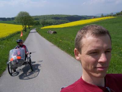 Während Martin dann bergab nach Holzminden fuhr, lieferte sich Johannes ein Rennen mit einigen Rennradfahrern - JA, trotz beladenen Fahrradanhänger :-) |