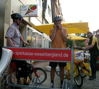 So mussten wir uns doch ins Eis-Cafè in Hess.-Oldendorf setzen ;-). |