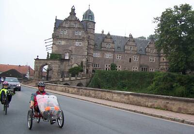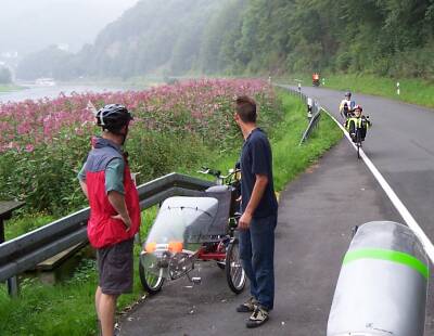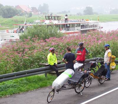 Hier, zwischen Rühle und Dölme hatten wir schon eine schöne Strecke endlang der Weser zurückgelegt. An dieser Stelle trafen wir auf Martin (die unsichtbare Gestalt hinter der Kamera), der uns Weser-aufwärts entgegen fuhr. |