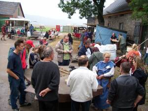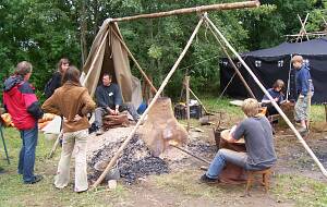 Eisenverhüttung nach historischem Vorbild in Rennöfen (früher so in dieser Region betrieben). |