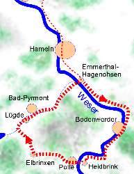 Bei Radsiek verließen wir die Straße bzw. Startbahn ;-) Kurz hinter Elbrinxen folgten wir auf dem Radweg mehr oder weniger dem Straßenverlauf nach Lügde. |