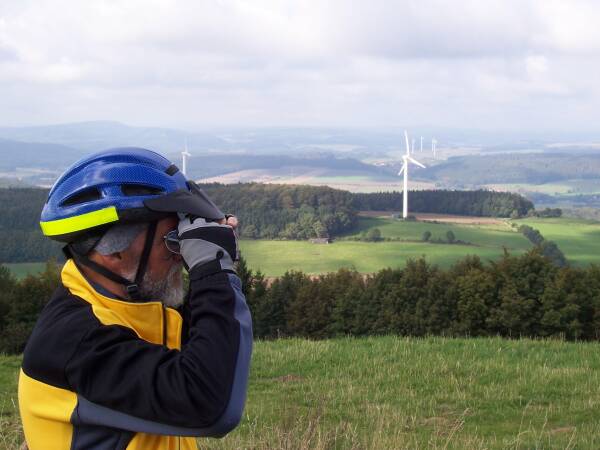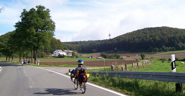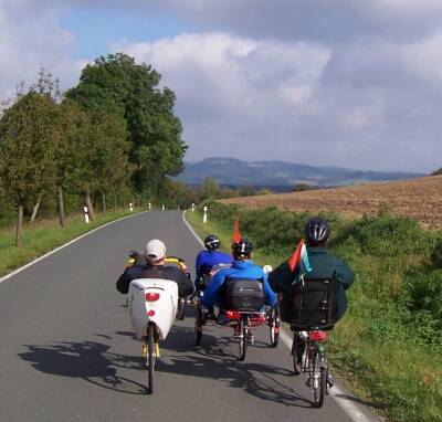 Nach einem letzten Blick in die Ferne, fuhren wir nun mit 6 Liegerädern talwärts Richtung Weser: |