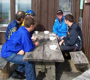 Lutz (rechts im Bild) trafen wir hier zufällig. Er hatte den Berg zuvor auch per Liegerad (Kettwiesel) erklommen. |