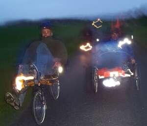 Mit der Abenddämmerung setzte sich auch Nieselwetter durch. Während Johannes nach 145 km in Hameln daheim war, wartete auf Matthias noch die PKW-Fahrt nach Minden. Andreas lieferten wir liegend in Hagenohsen ab. Andre und Martin radelten noch gemeinsam nach Hämelschenburg. Nach der Hochfläche lag Martin um 23:30 Uhr und 200 km auch vor seiner Haustür. |