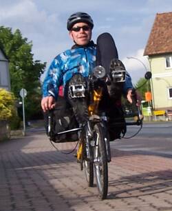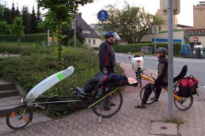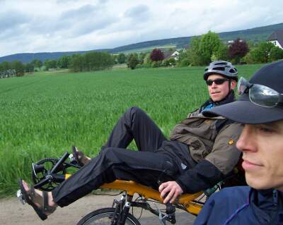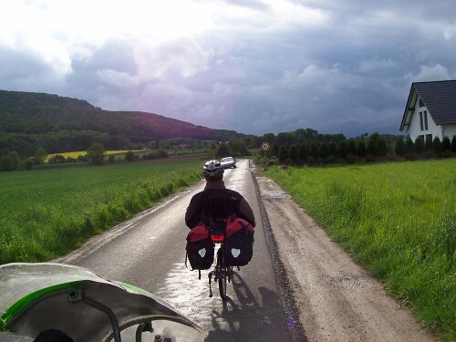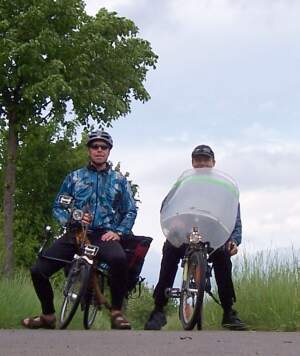 Matthias ( links im Bild ) reiste zunächst per Zug aus Berlin nach Hannover. Bei widrigen Wetterverhältnissen ( starker Gegenwind und einige Schauer ) radelte Matthias dann auf dem Leineradweg nach Elze ( z.Z. sind hiervon keine Bilder verfügbar).