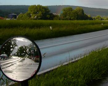 ![]() Mit der Aussicht auf einen sehr schönen Regenbogen (auf den Photo leider nur zu erahnen), konnte die Regenkleidung noch auf Dichtigkeit getestet werden ... ;-) |