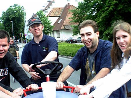 ![]() Liegeradtreffen in Hameln: In Zusammenarbeit mit dem FAHRRADIES-Hameln konnten wir auch in diesem Jahr wieder Liegerad-Probefahrten anbieten. Begeistert wurden auch die Fahrten auf dem ConferenceBike angenommen (siehe Bild). |